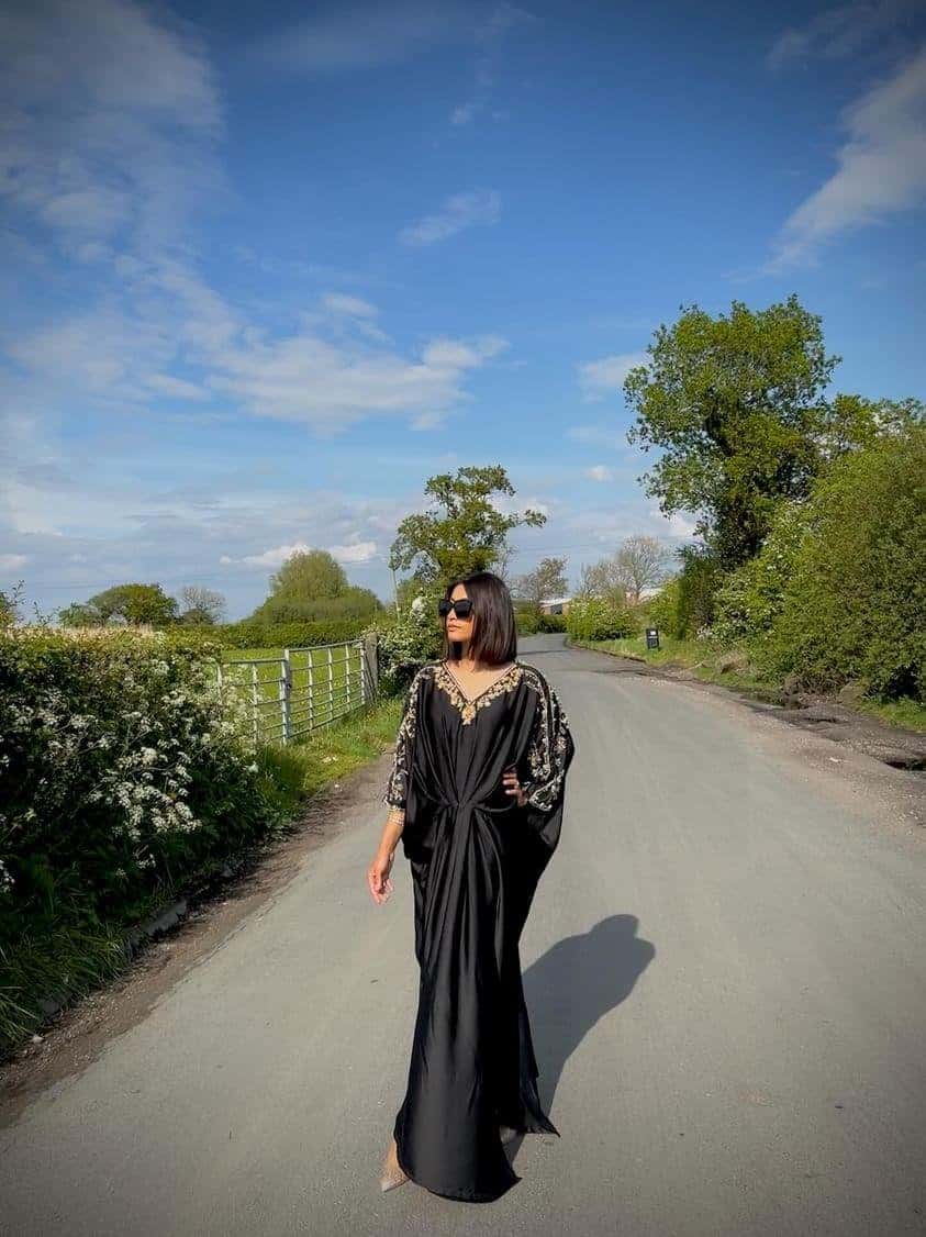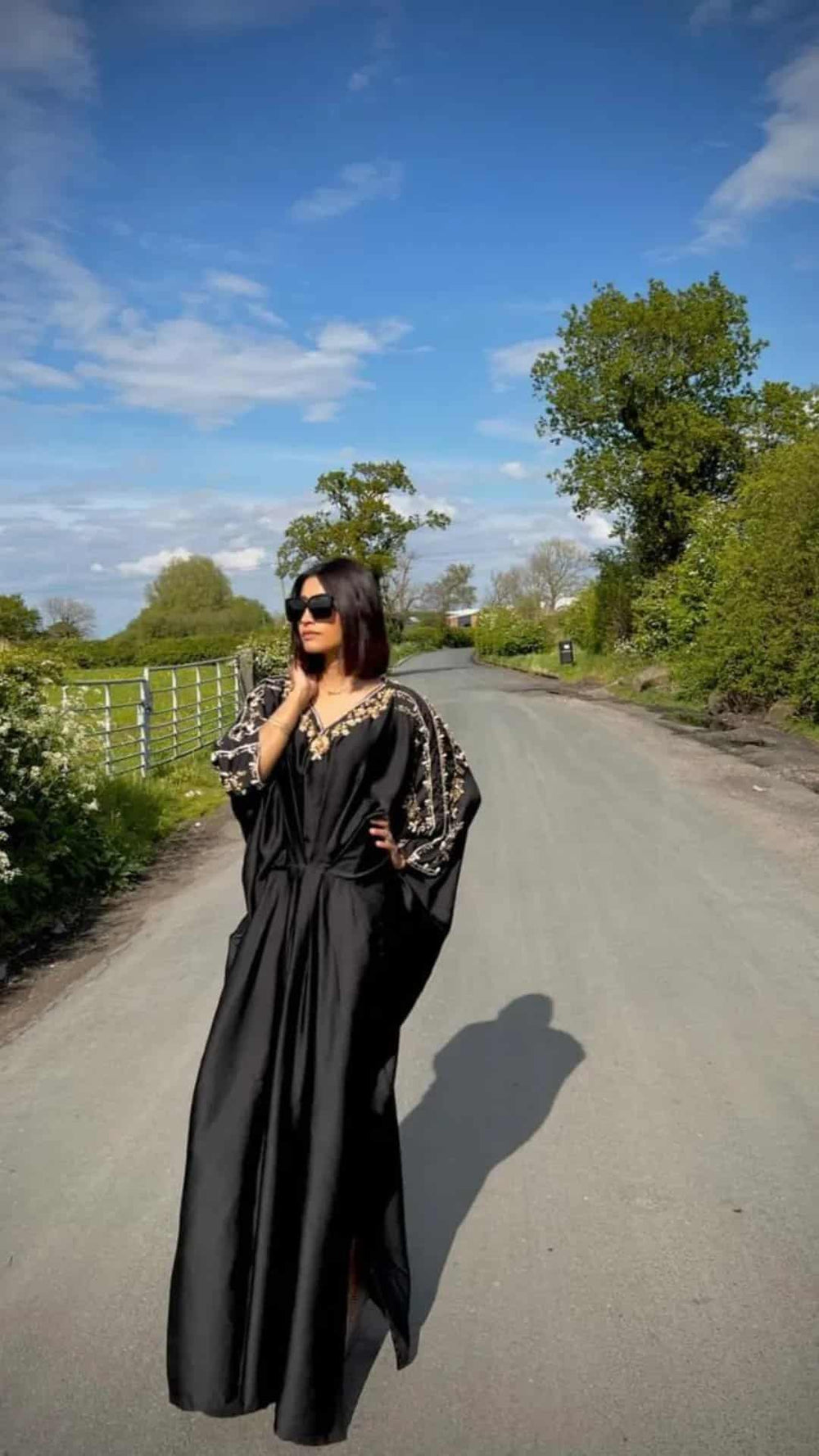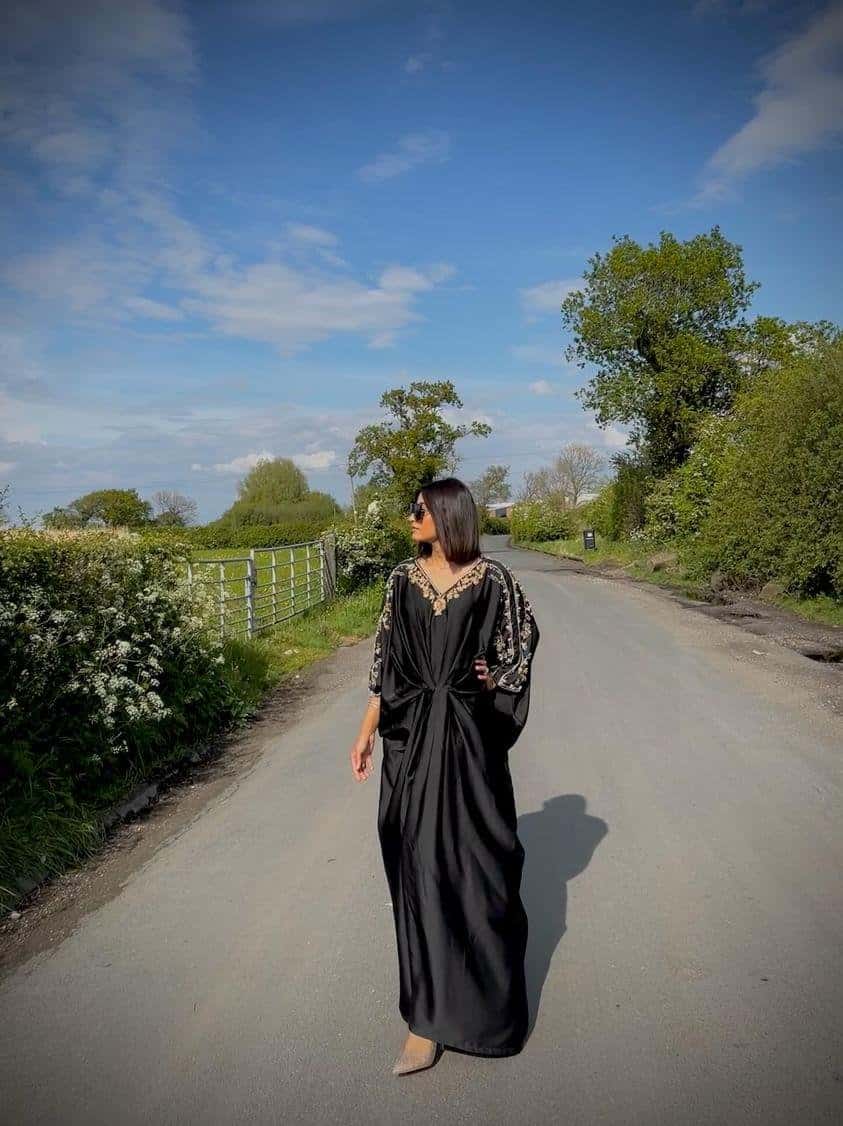 FULL HAND EMBROIDERY AND PEARL ON THE NECK AND ARMS