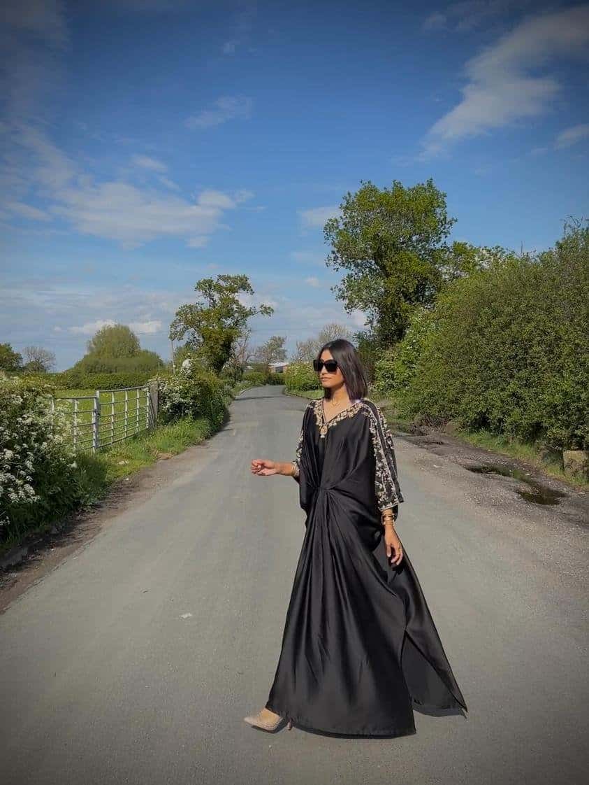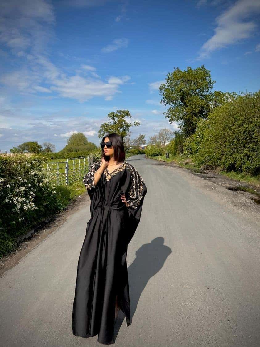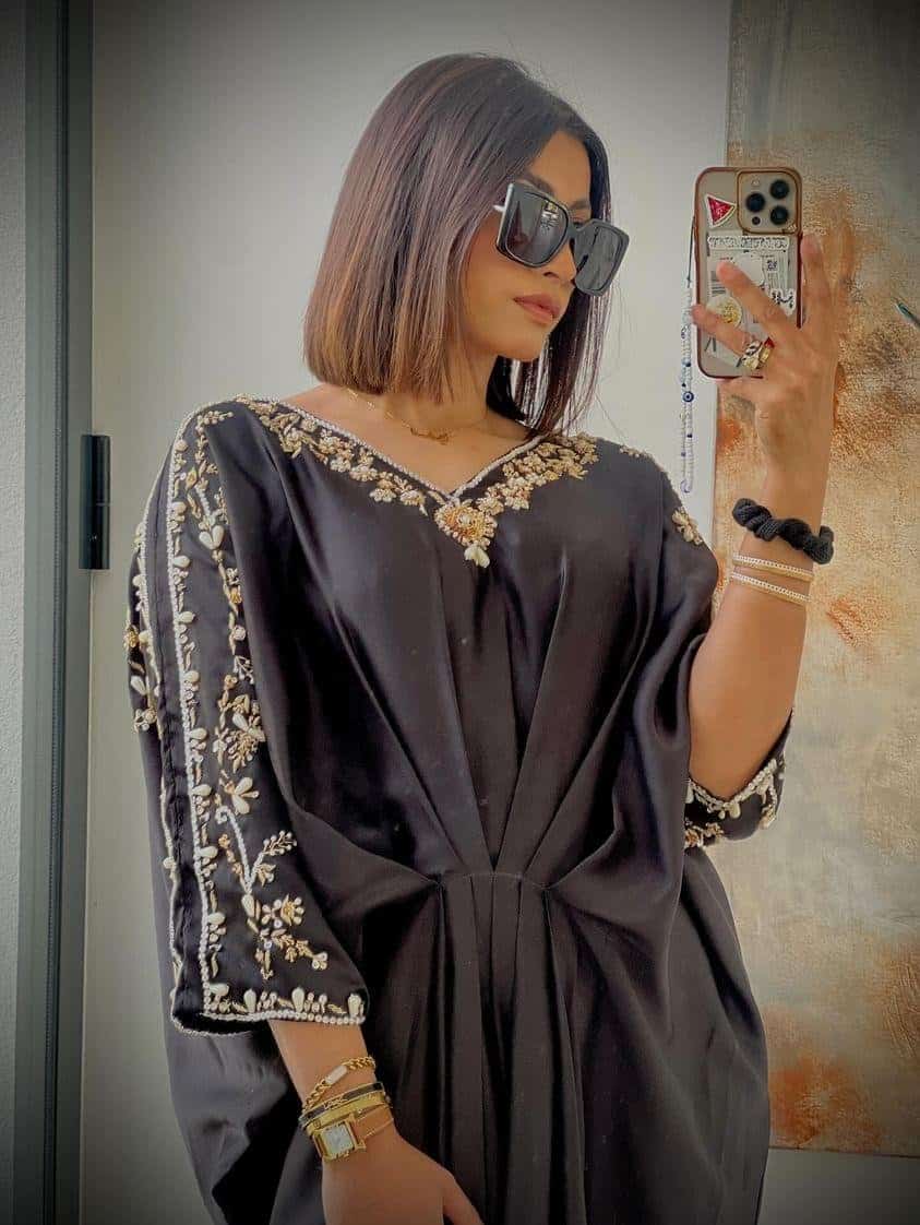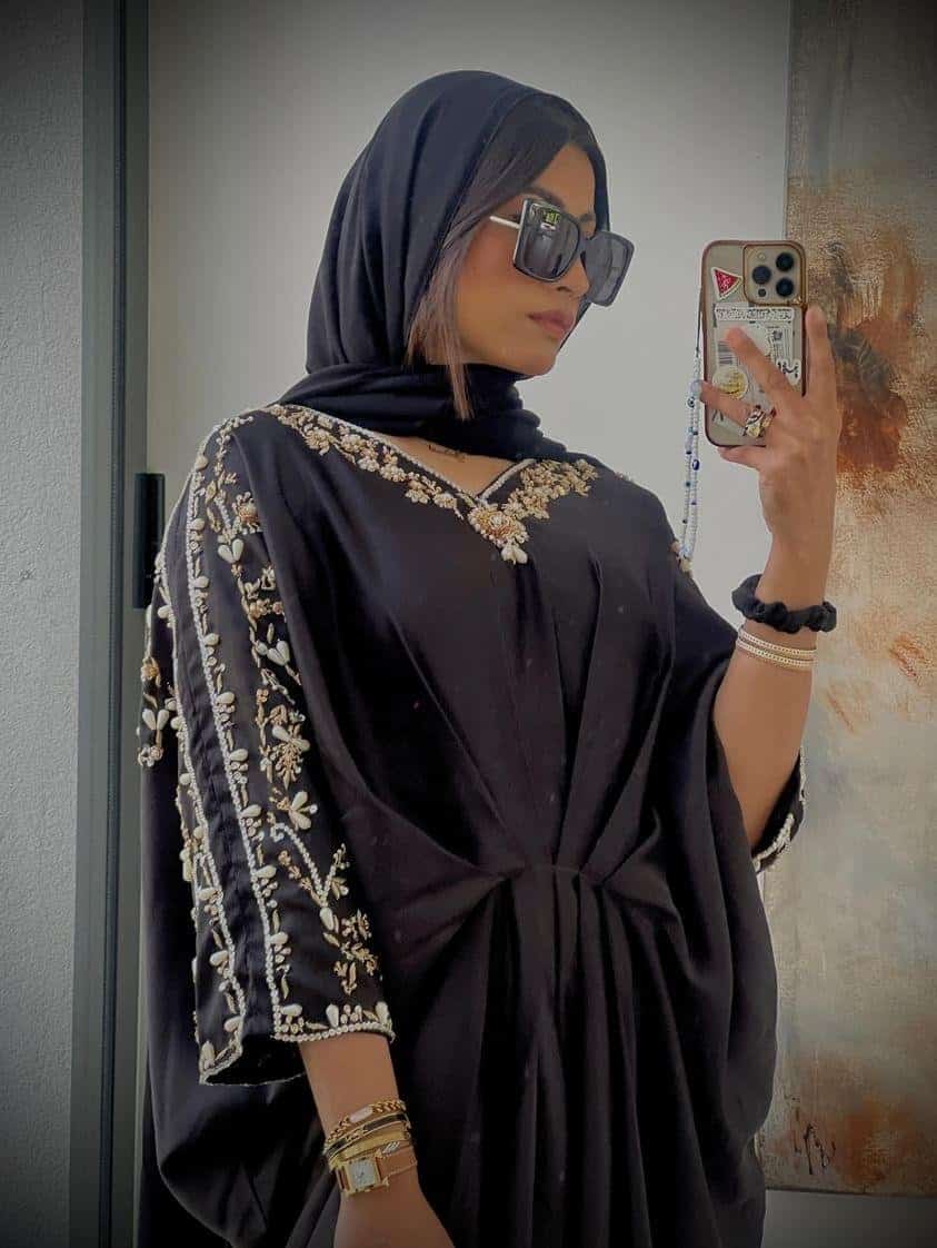 FULL HAND EMBROIDERY AND PEARL ON THE NECK AND ARMS